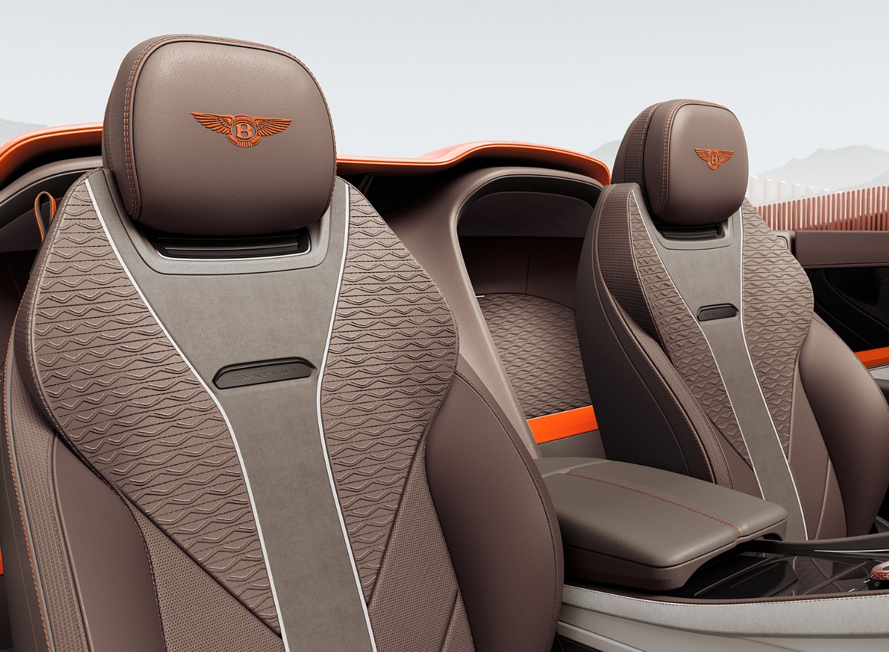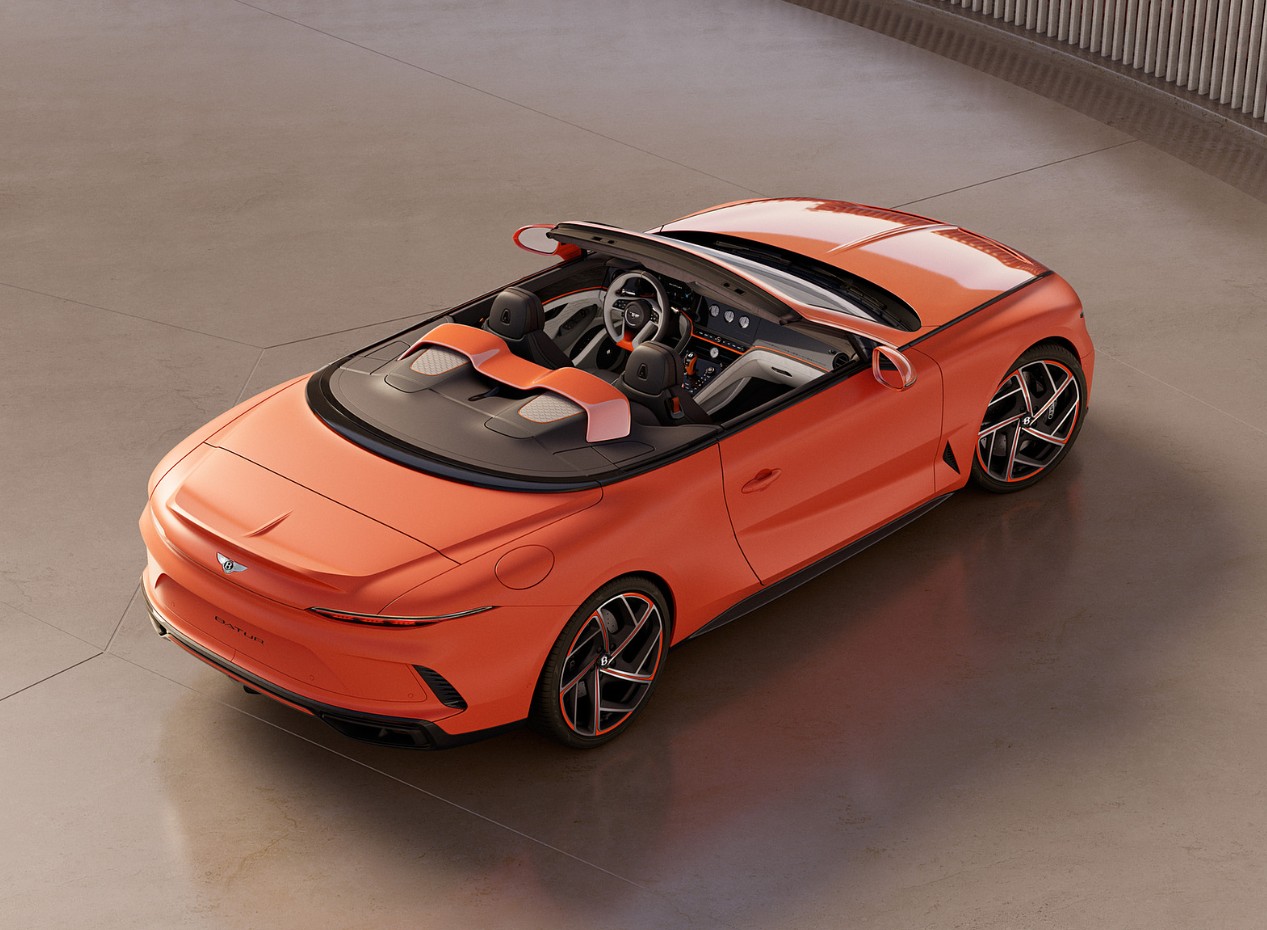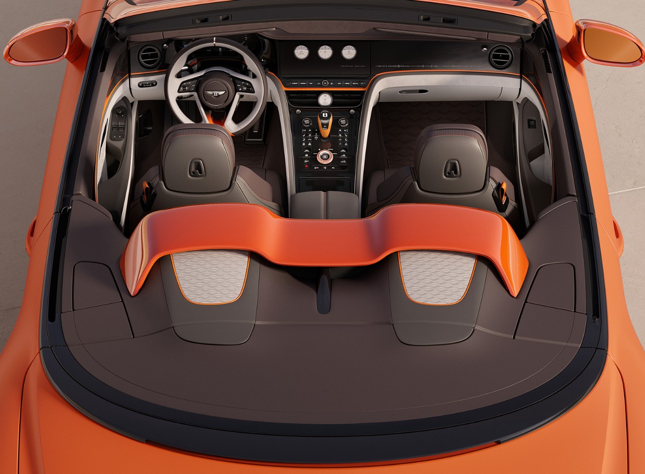 From the side, the car’s clean lines emphasize power and grace. The rear haunches have been sculpted to echo the curvature of the classic Bentley R-Type Continental, while new aerodynamic side skirts help reduce turbulence at highway speeds. The convertible soft top can be specified in multiple materials—including woven cashmere blends—and each is acoustically insulated to deliver coupe-like quietness when raised. The rear decklid design elegantly conceals the roof mechanism while maintaining a fluid, uninterrupted surface. At the rear, a full-width OLED taillight bar spans the sculpted trunk, seamlessly integrating with a deployable spoiler and twin titanium exhaust outlets.