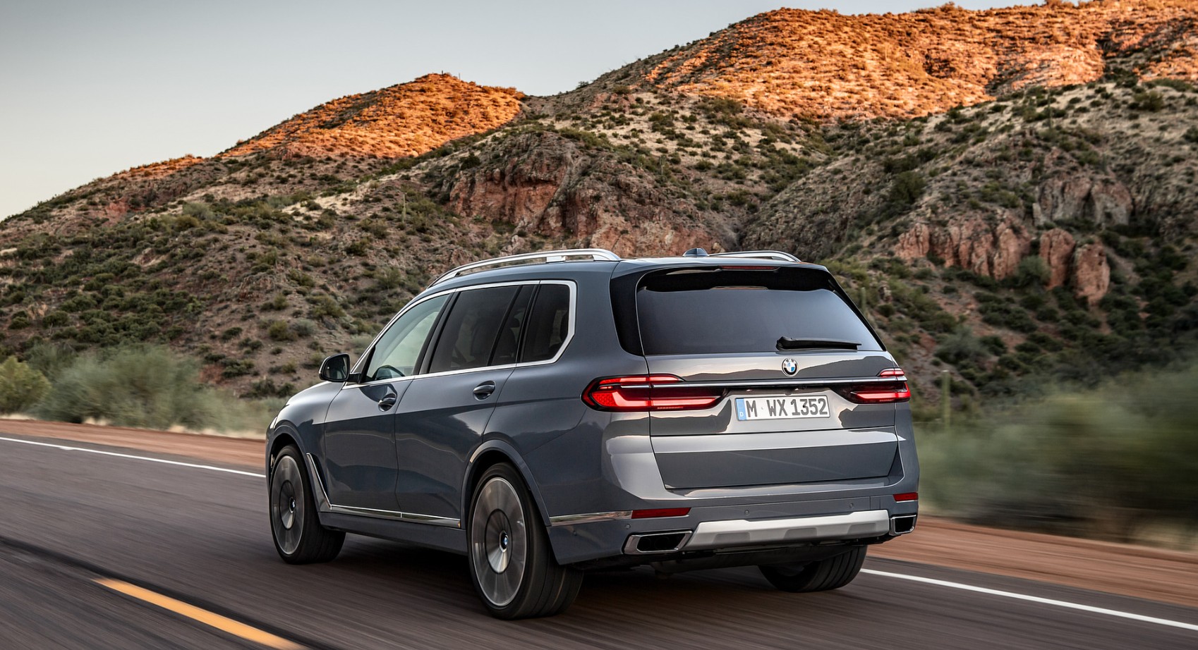 Along the side profile, the X7 maintains its commanding proportions but introduces smoother body lines and improved aerodynamics. Larger wheel options ranging from 21 to 23 inches emphasize the vehicle’s premium status, while redesigned door surfaces add visual depth and sophistication. At the rear, sleek LED taillights connected by a light strip create a contemporary look that aligns with BMW’s newest design direction.