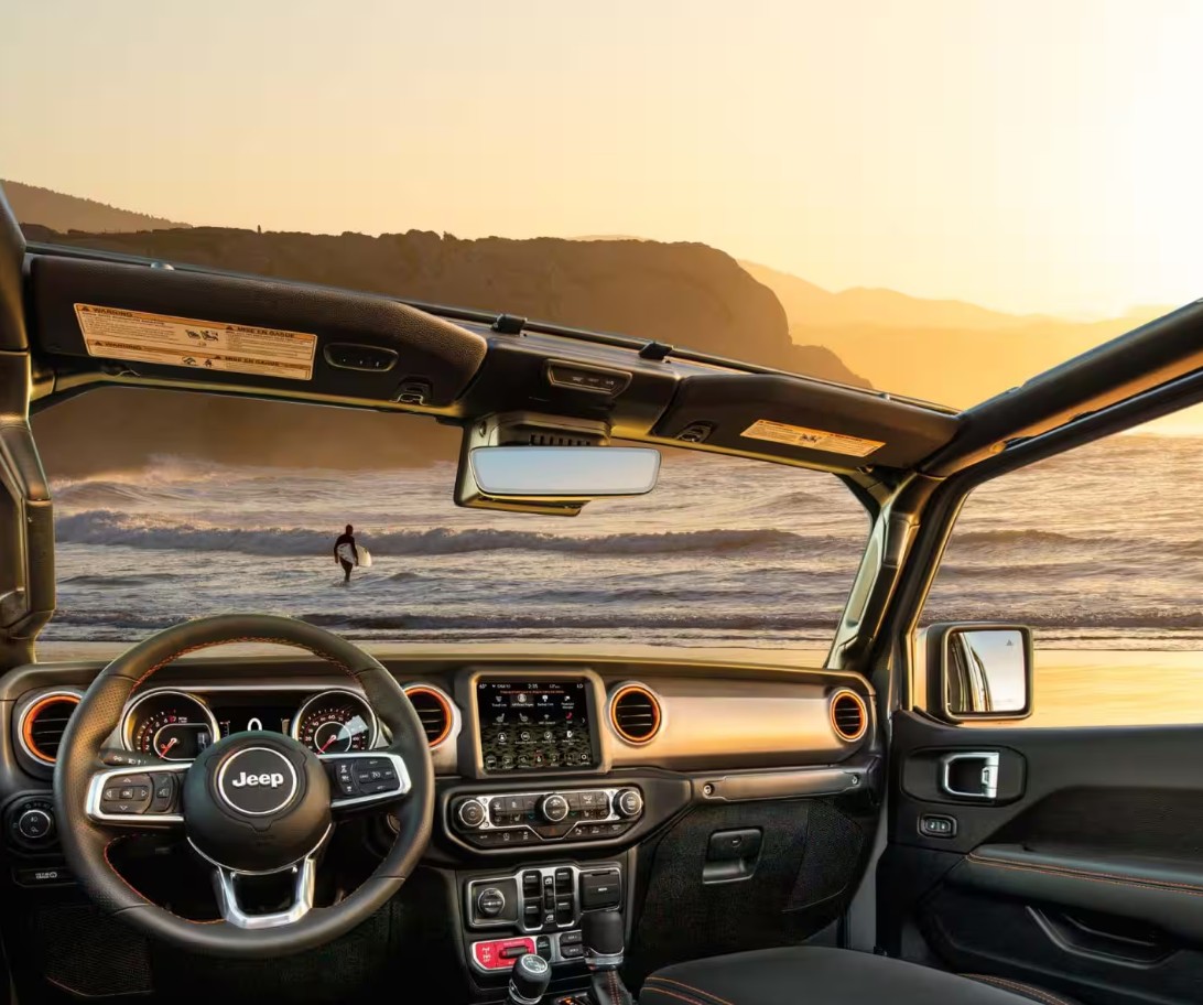From the side, body-colored fender flares, door handles, and mirrors reinforce the Sahara’s more refined personality. Wheel designs are updated with a focus on road presence rather than extreme off-road aggression, giving the Gladiator Sahara a confident, upscale stance. At the rear, subtle taillight revisions and a cleaner tailgate design enhance visual balance while retaining full bed functionality. Jeep also expands the color palette with sophisticated metallic and neutral tones that suit the Sahara’s premium positioning.