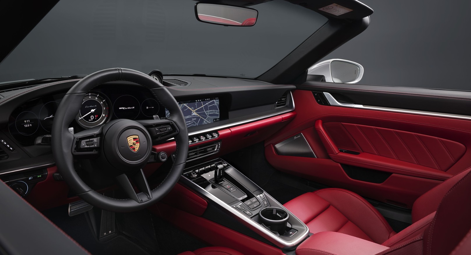 Color options expand to include exclusive metallic and heritage-inspired finishes. Porsche Exclusive Manufaktur customization allows bespoke detailing, from painted brake calipers to carbon-fiber roof accents. Even with the top down, the Cabrio maintains a balanced profile, its aerodynamic flow uninterrupted by unnecessary embellishments.