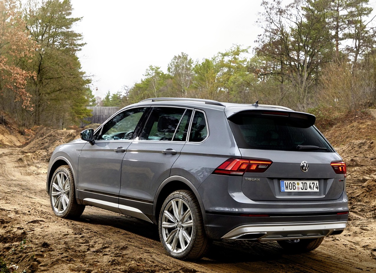 Along the sides, black cladding protects the body from rocks and debris while visually reinforcing the Tiguan’s rugged stance. Chunky all-terrain tires mounted on exclusive 18-inch wheels provide improved traction and a tougher look. Roof rails, tow hooks, and optional offroad lighting further enhance functionality. At the rear, a reinforced bumper and subtle roof spoiler improve both durability and aerodynamics.